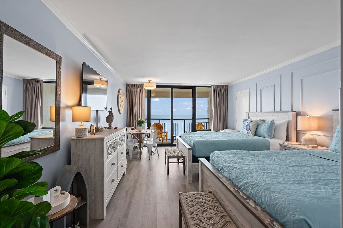 An oceanfront two-queen condo at Ocean Reef Resort. Great for families, with a private balcony, splash pad, lazy river, and indoor and outdoor pools just steps away.